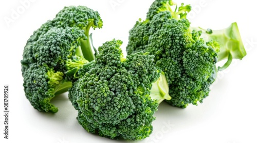 Fresh Green Broccoli Florets on White Background