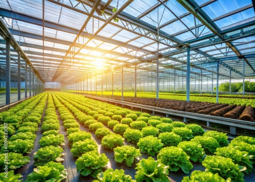Fresh Green Lettuce Growing in Greenhouse: Lush Hydroponic Farming, Organic Vegetables, Sustainable Agriculture, Indoor Gardening, Vibrant Greenery, Healthy Produce, Eco-Friendly Practices