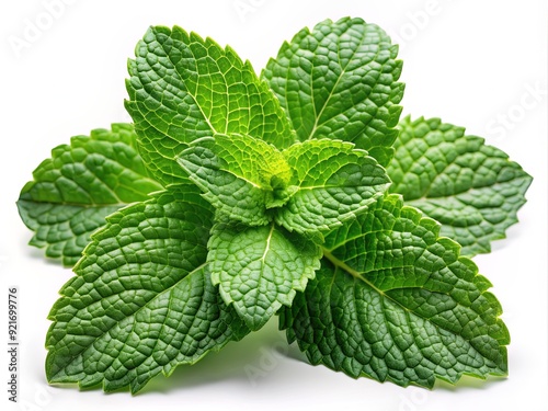 Fresh green mint leaves with delicate veins and soft focus background, isolated on transparent white, perfect for herbal remedies and culinary designs.