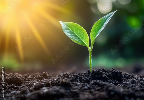 Fresh Green Seedling Emerging from Dark Soil Under Bright Sunlight, Symbolizing Growth, Renewal, and the Beauty of Nature in a Vibrant Ecosystem