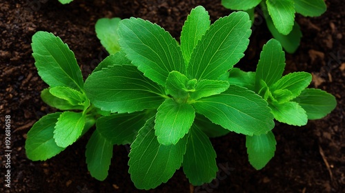 Fresh Green Stevia Plant Growing in Soil