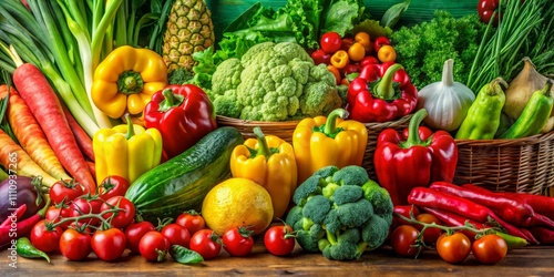 Fresh Harvest Vibrant Vegetable Bounty on Wooden Surface in Studio Lighting - Healthy Eating Concept