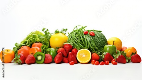 fresh, healthy, food, white, background, illustration, fruit, vegetable, colourful, balanced, diet, strawberry, orange, lettuce, pepper, vibrant, juicy, crisp, assortment, nourishment, wellness, organic, natural, clean, wholesome, vitality, energy, vitamin, mineral, antioxidant, fiber, plant, based, raw