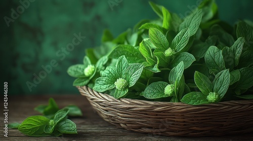 herb, basket, fresh, green, leaf, vegetable, food, healthy, nature, cooking, plant, organic, natural, closeup, ingredient, cookery, spring, summer, diet, health food, nourishment, vitamin, herbal, medicine, salad, dish, decoration, background, wooden, table, rustic, vintage, texture, detail, display, still life, studio, macro, food photography, green background, herbal medicine, cooking ingredient, fresh produce