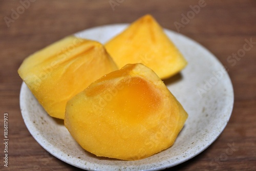 kaki, persimmon, fruit, supermarket, japanese, japan, tokyo, closeup, closeup, cookery, cut, food, fresh, healthy