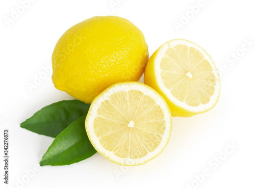 lemon, white, background, isolated, fresh, fruit, slice, yellow, half, citrous, leaf, food, closeup, healthy, ripe, cut, ingredient, vitamin, juicy