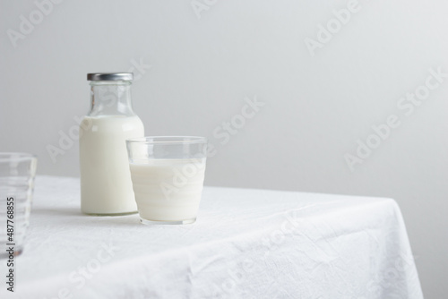 Fresh Milk on the table with white tablecloth