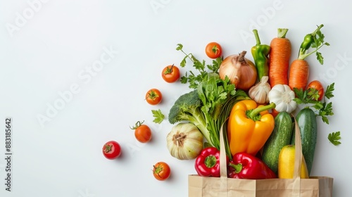 vegetable, produce, fresh, healthy, food, grocery, bag, paper, red, orange, green, yellow, white, tomatoes, cherry, tomatoes, carrot, carrot, broccoli, courgette, pepper, pepper, garlic, onion, parsley, herb, organic, farm, market, natural, diet, nourishment, vitamin, lifestyle, vegan, vegetarian, cooking, ingredient, kitchen, still, life, flat, lay, top, view, background