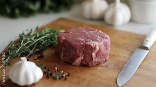 beef, steak, raw, meat, cooking, kitchen, culinary, fresh, organic, herb, thyme, garlic, food, preparation, healthy, ingredient, protein, knife, wood, surface, favor, spice, epicure, receipe, chef, dish, nourishment, savoury, rustic, natural, meal, dinner, bar-b-q, freshness, butcher, single, uncooked, tender, cut, culinary arts, tasty, raw food, dining, seasonal