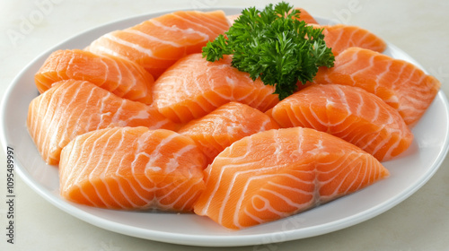 salmon, fillet, slice, raw, fish, seafood, sushi, sashimi, healthy, cooking, meal, eatery, quality, dinner, protein, omega 3, diet, food, culinary, photo, styling, delicious, premium, high-quality, organic, parsley, garnish, ingredient, plate