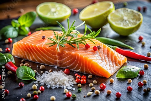 salmon, seafood, fresh, spice, healthy, cooking, basil, rosemary, lime, sea salt, red pepper, epicure, culinary, ingredient, fish, nourishment, organic, diet, vibrant, colourful, closeup, food photography, kitchen, receipe, dinner, delicious, summer, eatery, meal, plate, freshness, herb, garnishing, chef, favor, presentation, fish dish, healthy eating, protein, ocean, cookery, colours