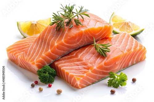 fresh salmon fillet white background