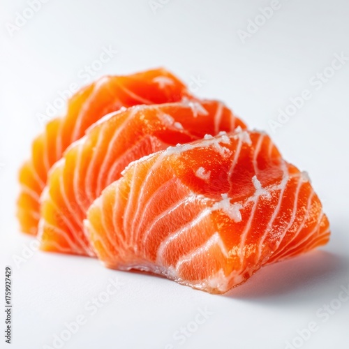 Fresh salmon sashimi slices on white background