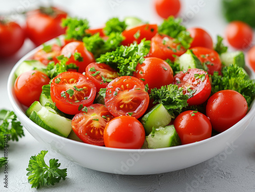 tomato salad, cherry tomato, cucumber salad, health food, vegetarian food, vegetable salad, parsley, red tomato, food photography, healthy eating, light meal, side dish, cookery, culinary, receipe, diet food, lunch