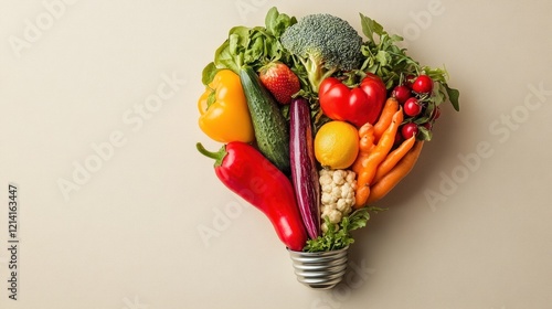 food, healthy, vegetable, fruit, light bulb, idea, concept, nourishment, diet, eating, lifestyle, wellness, freshness, vibrant, colourful, organic, natural, produce, ingredient, vitamin, energy, power, growth, plant, healthy eating, cooking, receipe, meal, weight loss, fitness, well-being, balance, choice, selection, harvest, agriculture, farm, garden, summer, spring, autumn, tasty, delicious, carrot, broccoli, pepper, strawberry