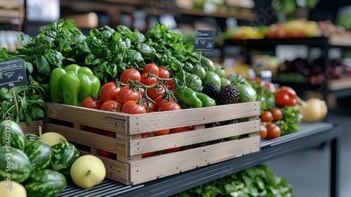 vegetable, fresh, wooden crate, produce, farm, organic, health food, gardening, harvest, natural, green, cooking, vegetarian, colourful, alimentary, homegrown, seasonal, local, ingredient, fresh produce, rustic, red tomato, green pepper, carrot, courgette, onion, herb, biodiversity, wholesome, culinary, food photography, freshness