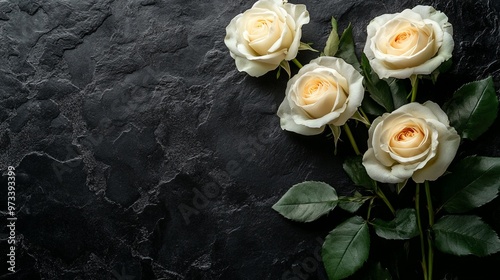 fresh, white, rose, black, dark, background, condolence, card, empty, place, text, plant, grieved, saying, blossom, top, day, romantic, flat, funeral, love, grave, horizontal, symbol, gravestone, nature, copy space, romance, sorrowful, grief, memorial, valentine, sentimental, spirituality, quote, tomb, view, lay, stone, old, decoration, flower, death, beauty, loss, emotional, wedding, floral