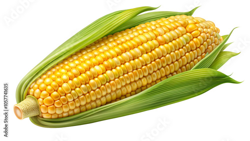 Fresh Yellow Corn on the Cob with Green Husk Isolated on a White Background