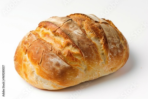 Freshly baked bread on a clean white surface, perfect for food photography or advertising
