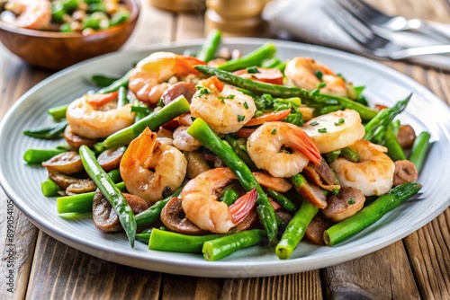 shrimp, asparagus, bean, mushroom, sauteed, served, dinner, lunch, food, epicure, cookery, seafood, vegetable, healthy, alimentary, delicious, tasty, appetising, savoury, flavorful, banner, creative, copy space, image, photo, culinary, chef, kitchen, cook, receipe, meal, platter, dish, plate, gastronomy, freshness, quality, style, elegance, sophistication, refinement, beauty, colours, palette, design, visual, aesthetic