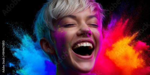 holi, fun, colourful, laugh, festival, woman, happy, colourful, party, fun, portrait, lively, orange, blue, celebration, energy, live, positive, frolicsome, youth, celebrate, high spirits, emotion, gaudy, tight, high spirits, elation, dynamic, mood, happiness, luck