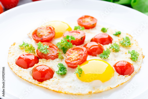 egg, food, fried, white, cherry tomato, red, breakfast, vegetable, healthy, traditional, dinner, tasty, lunch, cookery, parsley, plate, delicious