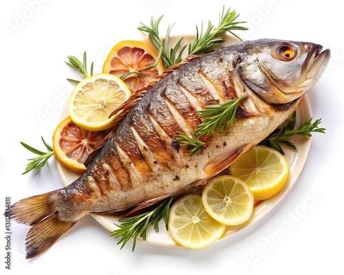 fish, food, lemon, meal, seafood, trout, fried, fresh, plate, grilled, dinner, sea, healthy, dish, white, isolated, baked, diet, cooking, raw, lunch, epicure, bream, prepared, nourishment