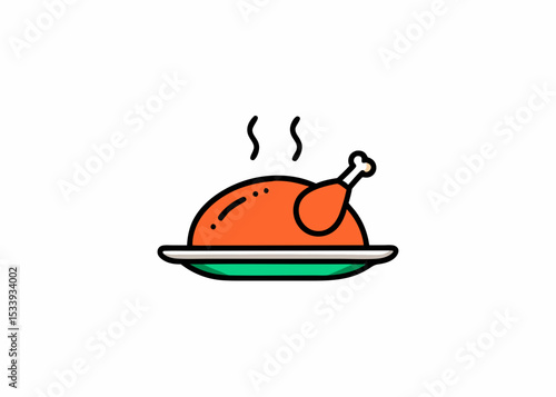 Fried white meat chicken. Vector illustration.