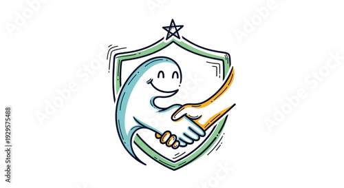 handshake, ghost, shield, trust, partnership, agreements, security, protection, collaboration, deal, friendly, happy, character, cartoon, business, team, integrity, alliance, insurance, finance, support, isolated, white background, illustration, vector, icon, symbol, safety, guarantee, contract, accurateness, secure, teamwork, cooperation, corporate, success, client, client, service