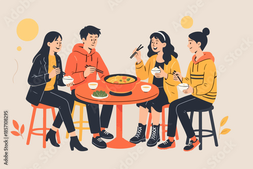 Friends Dining Together Flat Illustration