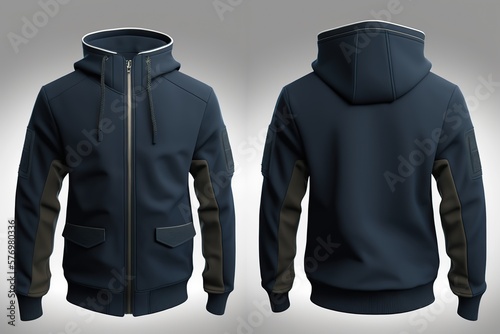Front and Back of an Editable male Hoodie. Generative AI illustration.
