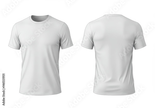 Front and back view of a blank white t-shirt on a white background, perfect for mockups and design templates