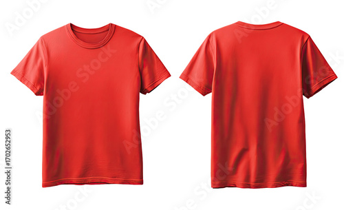 t-shirt, red, coral, blank, apparel, clothing, design, fashion, style, template, unisex, casual attire, summer, printed, graphic, illustration, digital, front, back, view, short, sleeve, basic, solid, colours, product, display, shirt, blood-red, vibrant