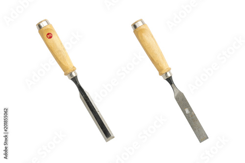 front- and backside of an old chisel, isolated on white