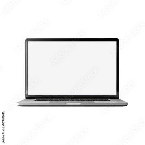 Front View Of Silver Laptop With Blank Scr isolated on a transparent background