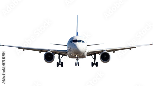 aeroplane, aircraft, plane, commercial, jet, airliner, white, isolated, front, view, travel, transport, transportation, flight, flying, air, sky, passenger, aviation, journey, vacation, business, tour tourism, global, international, aerodrome, departure, arrival, engine, wing, fuselage, landing gear, clean, modern, studio, cut-out, background