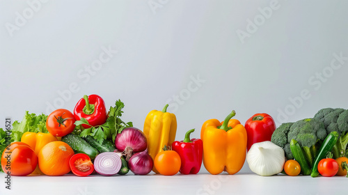 front view vitamin color grading group of vegetable wallpaper, plain white background HD 8K