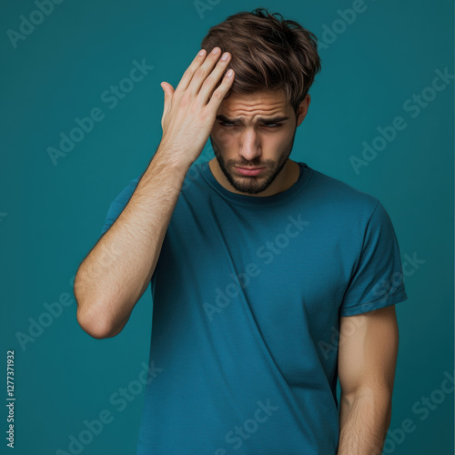 Frustrated young man studio setting portrait photography solid background close-up emotional expression
