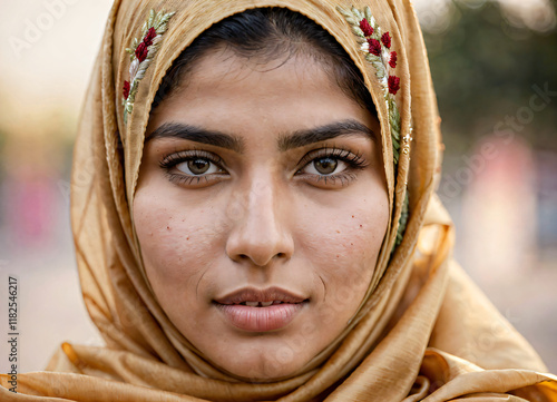 woman, beauty, face, foulard, fashion, people, smile, winter, person, hair, teenage, smiling, eye, model, head, lady, autumn, hood, expression, outdoors, 1, hat, lifestyle, arab