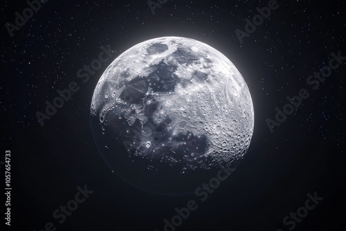 Full Moon in Dark Night Sky with Stars