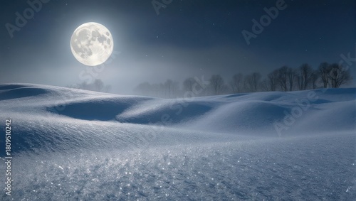 moon, night, winter, snow, landscape, hill, cold, frost, ice, outdoors, nature, scenic, serene, peaceful, tranquil, darkness, sky, atmosphere, weather, season, white, blue, light, glow, shimmer, sparkle, field, ground, terrain, horizon, silhouette, tree, branch, bare, latently, chill, glacé, wilderness, remote, empty, huge, open, expanse, beauty, calm, stillness, quiet, aethereal, magical