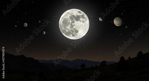 moon, night, sky, full, dark, moonlight, star, light, star, sea, space, cloud, cloud, nature, blue, landscape, planet, fantasy, water, black, astronomy, bright, lunar, horizon, midnight