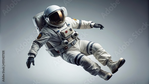 astronaut, suit, helmet, space, white, isolated, background, gravity, defy, mid-air, freezed, clothed, minimalist, pure, zero, floating, weightless, attire, protective, gear, armoring, cosmic, aethereal, serene, simple, evacuated, empty, stark, clean, flawless, smooth, gleaming, metallic, reflective, opaque