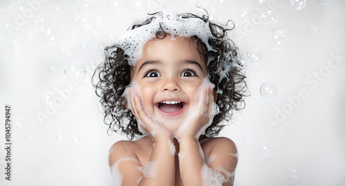 bathe, bathroom, childhood, foam, girl, smile, curly, hair, cheerful, little, happy, clean, bubble, soapy, rejoice, white, background, emotion, hand, face, portrait, splash, bathtub, shower, laundered, sponge, washcloth, water, hygiene, scented, aroma, adorable, cute, soap, washing, care, home, children, health, baby, caucasian, healthy, funny, beauty, scream, closeup, smiling, teeth