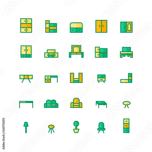 Furniture icon set vector flat line for website, mobile app, presentation, social media. Suitable for user interface and user experience.