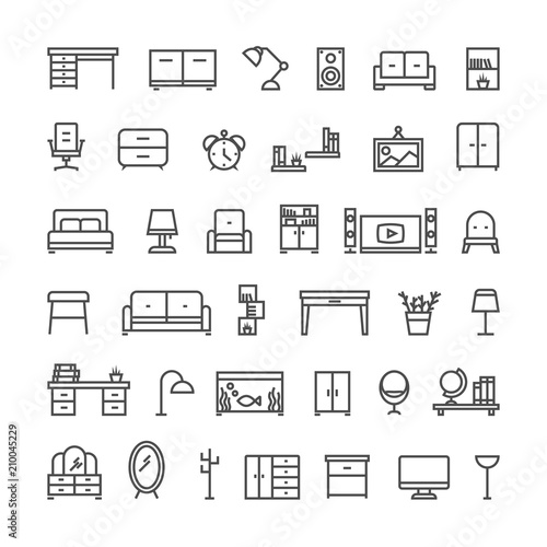 design, home, table, room, furniture, chair, sofa, set, collection, office, interior, lamp, desk, bed, cabinet, symbol, icon, line, seat, armchair, clothes rack, house, pictogram, couch, modern, web, decor, outline, equipment, cupboard, element, shelf, mirror, television, bedchamber, lounge, chest, nightstand, signs, decoration, business, shape, silhouette, simple, element, book, application, domestic, plant