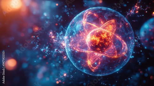 Fusion and fission processes within the atomic nucleus, visualizing energy interaction