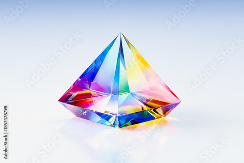 Future Technology Colorful Pyramid Prism Crystal with Rainbow Light Refraction for Data Visualization Innovation and Optical Science Concept Design on Clean White Background