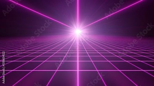Futuristic Abstract Background with Neon Laser Grid and Radiating Purple Light Effect