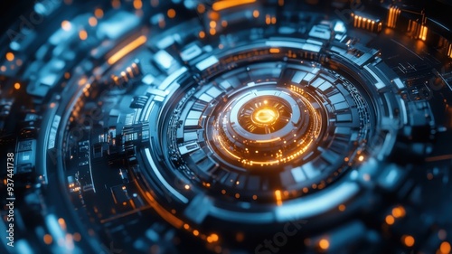 Futuristic abstract design showcasing glowing elements in a circular pattern, perfect for tech and digital themes.